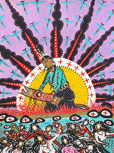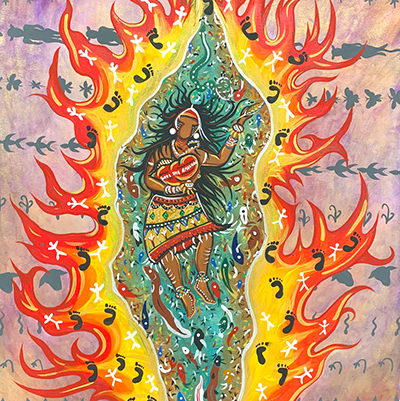 We are visual teachers, healers. My art centers around my identity and activism. My work speaks of my passion for who I am, for the land, and for Indigenous voices. My passion is my people. Much of our traditions are taught not in books but in words, song, and, most often, through art.